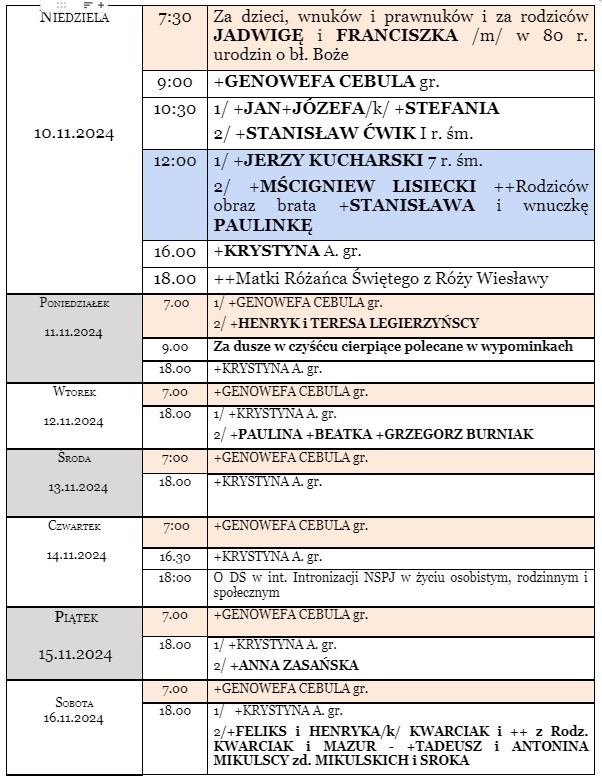 Home | Intencje | Intencje Mszalne